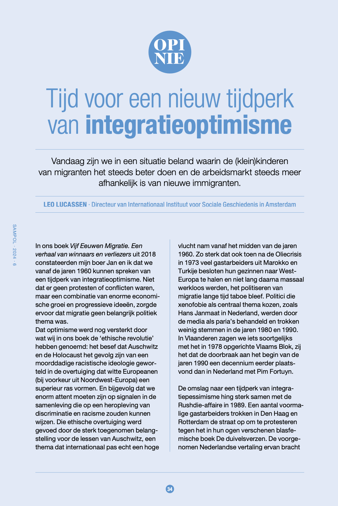 CGM-voorzitter Leo Lucassen schreef voor de juni-editie van politiek maandblad ‘Samenleving & Politiek’ een opiniestuk over hedendaagse houdingen ten opzichte van integratie.